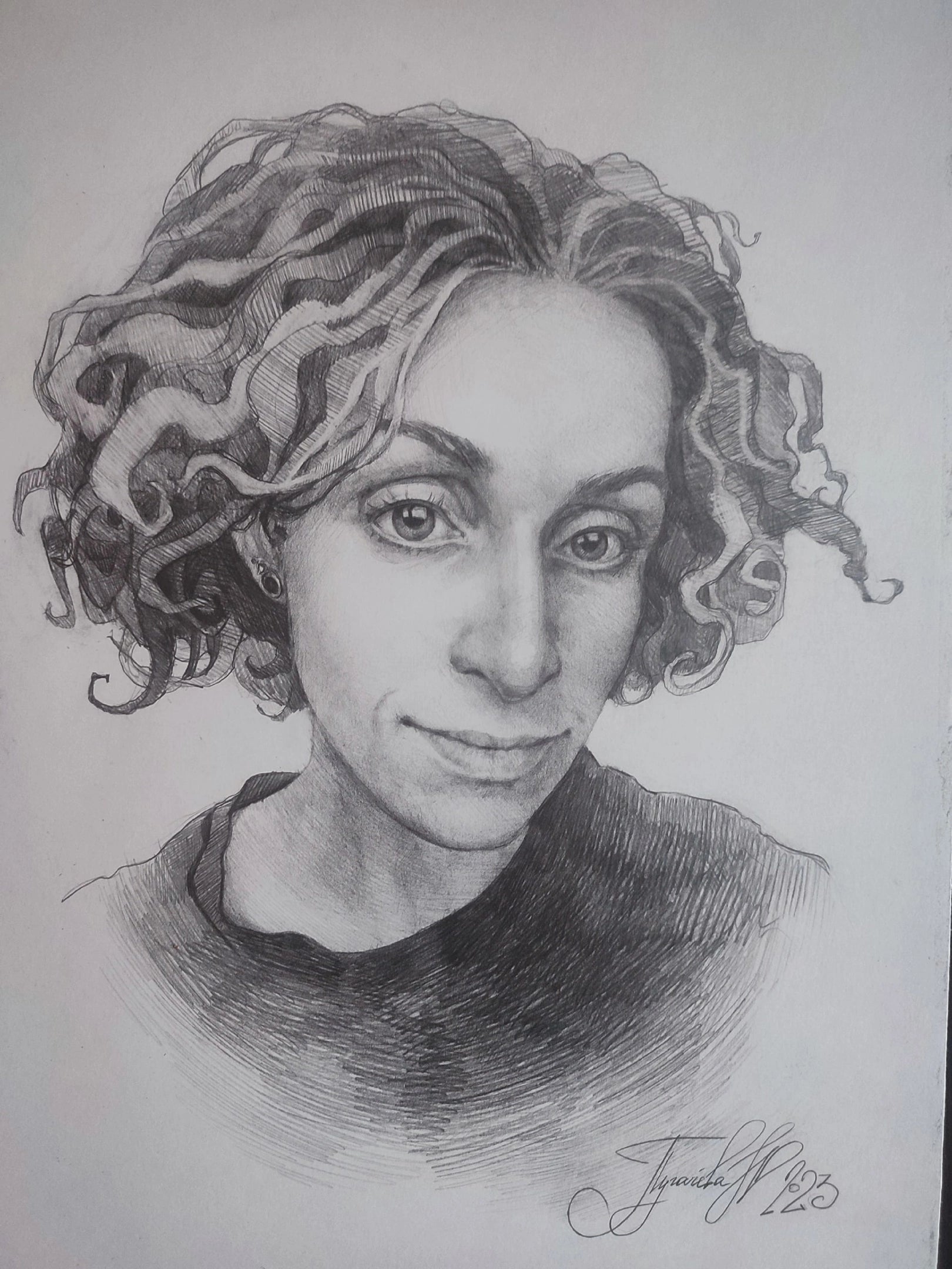 Ihre erste Einzelausstellung fand am Institut für Kunst statt, wo sie im dritten Studienjahr war. Es war eine Serie von grafischen Porträts, die in verschiedenen Techniken und aus unterschiedlichen Perspektiven erstellt wurden. Damals erkannte sie, dass es ihr besonders liegt, Menschen zu zeichnen, und dass sie dies besonders gut kann.