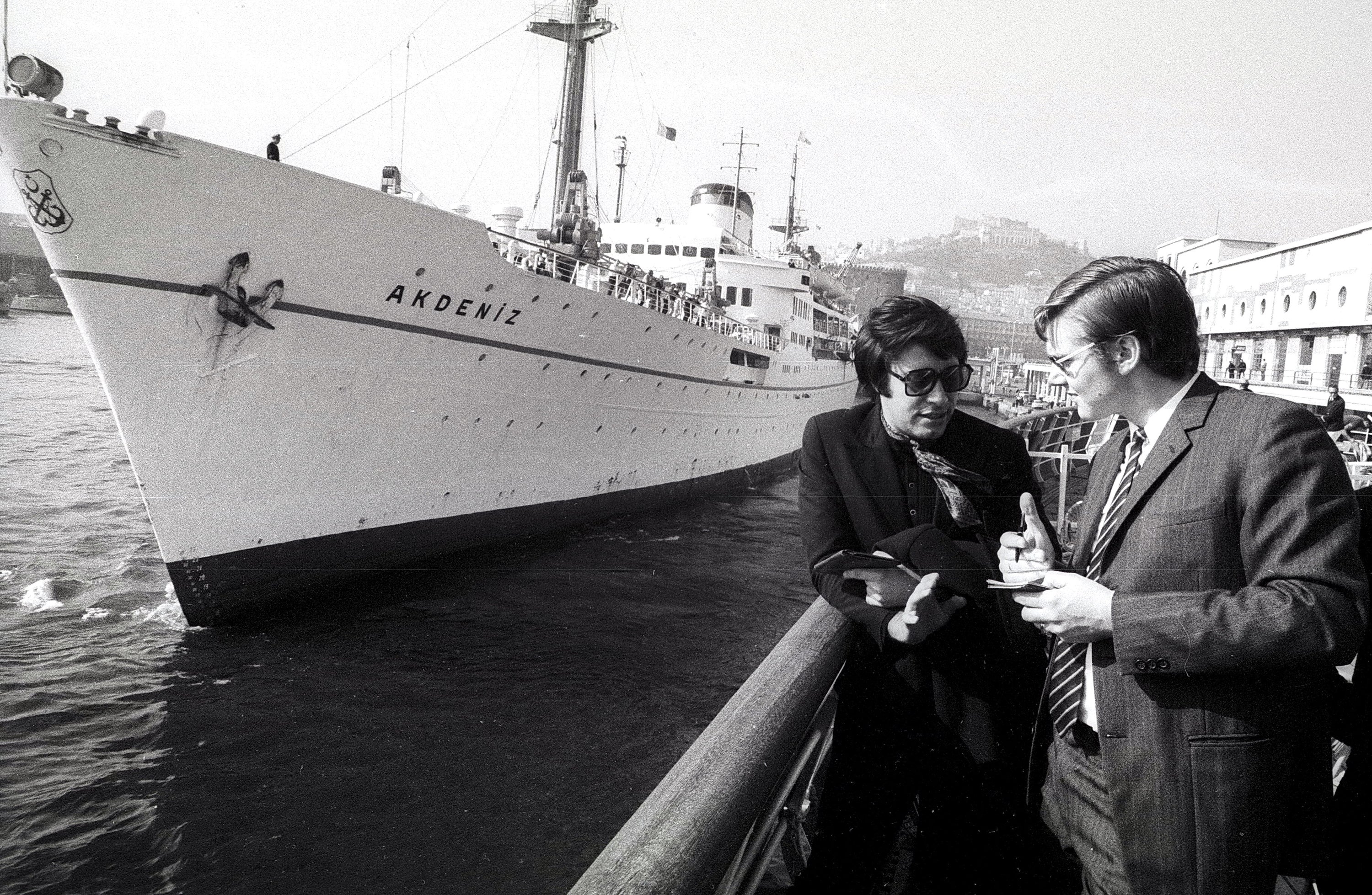Roy Black (links) mit Peter Bischoff bei Interview während Mittelmeer-Kreuzfahrt in Tunis, Tunesien