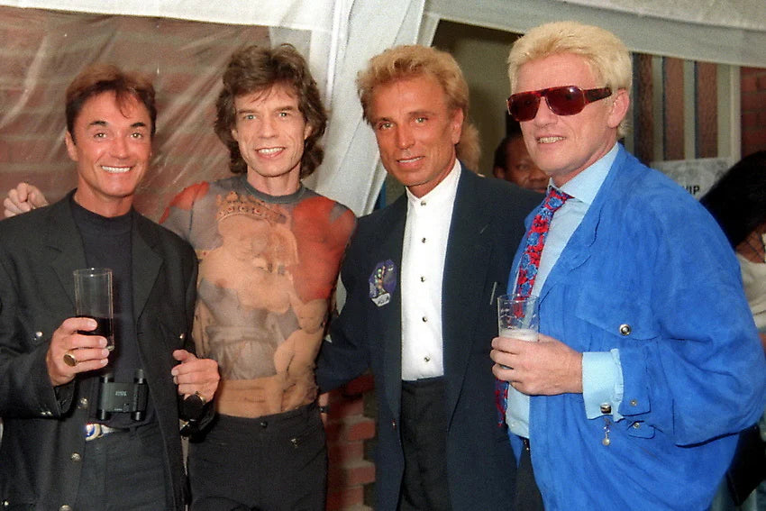 Björn Bischoff-Foto, das um die Welt ging: Heino mit Siegfried & Roy als Ehrengäste von „Rolling Stones“-Chef Mick Jagger bei seinem Konzert in Köln.
